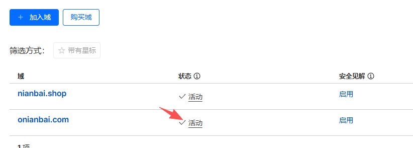接着回到cloudflare查看域名是否变为活动状态了,如果是活动状态代表该域名已经接入cloudflare了,有些时候更换域名服务器的过程可能要多等一会,如果比较慢的话就先去做点别的事情。