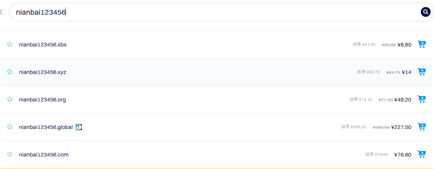 这里可以选择最便宜的的域名然后不续费,每年换一个,这样每年就只需要几块钱,当然想长期使用不单单作为穿透域名使用的朋友就可以选择com、org、net后缀的这些域名,这里的续费对比一下还是便宜一点的
