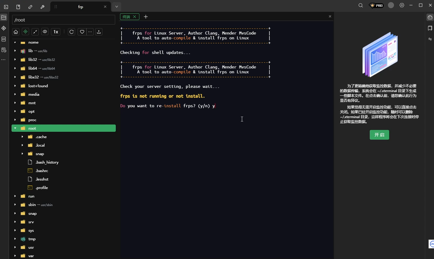 代码拉取完成后,会出现提示询问你是否安装,输入y回车执行