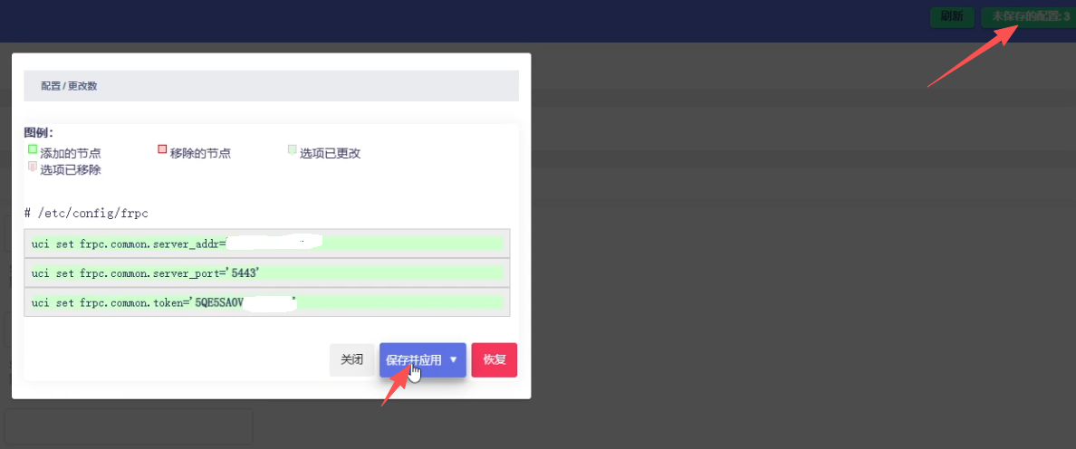 保存设置(我不知道为什么我点页面最下面的保存不管用,要点页面上放右侧的未保存的设置,才能正常的保存设置)