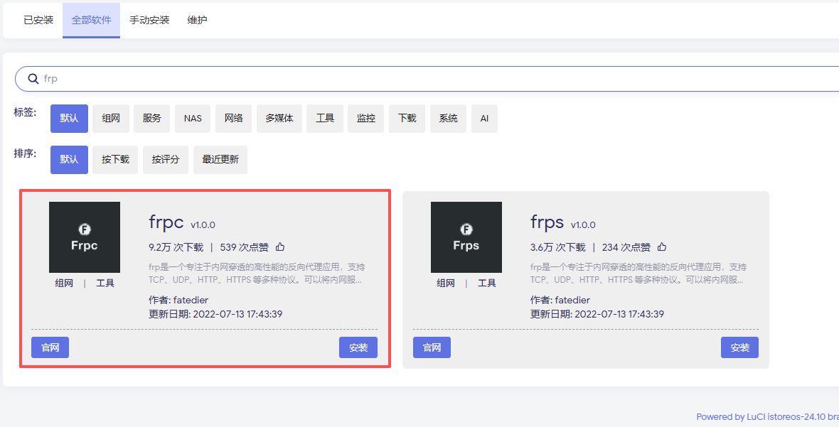 3. istoreOS软路由,通过 istoreOS,来安装并运行 frp 客户端。