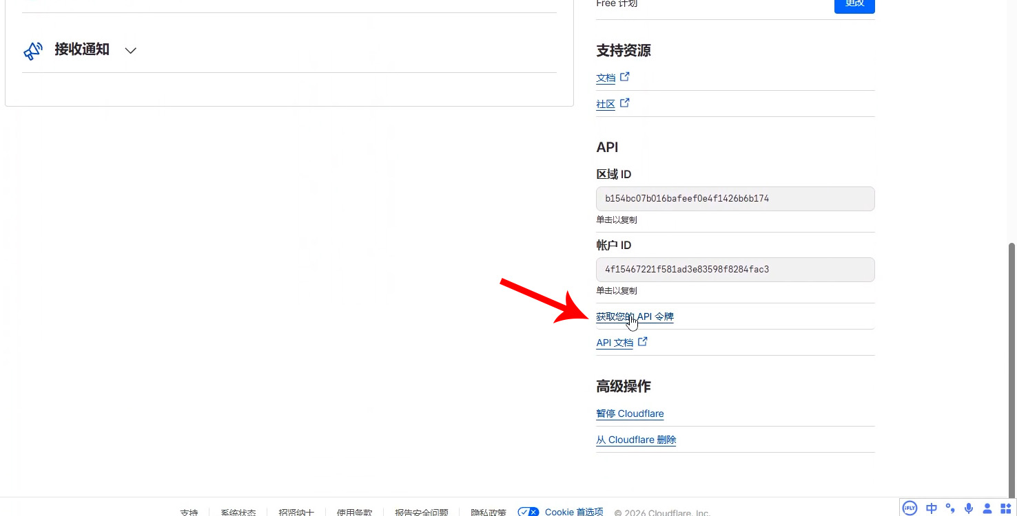 在cloudflare域名管理页面找到,获取您的PI令牌