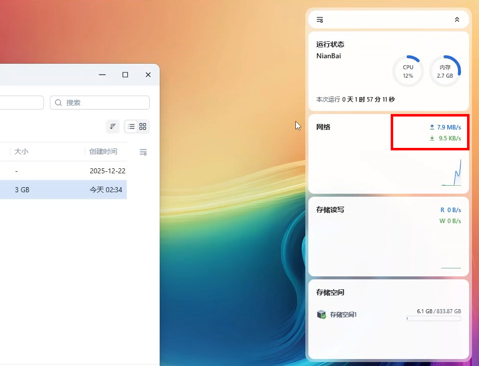IPV6作为点到点的传输理论上是可以跑满我们宽带的上行速率的,经过测试通过5G热点连接笔记本电脑去访问NAS,也确实跑满了宽带的上行