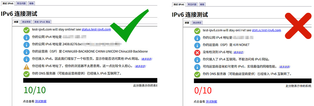 检测IPV6:点击检测