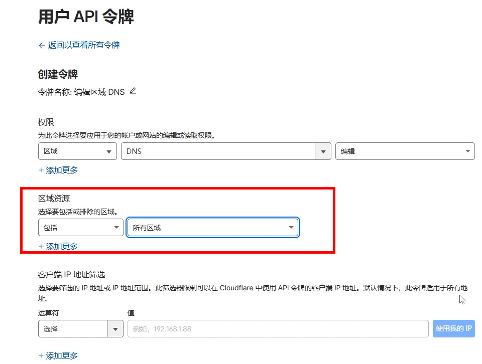 区域资源选择:所有区域。创建该令牌